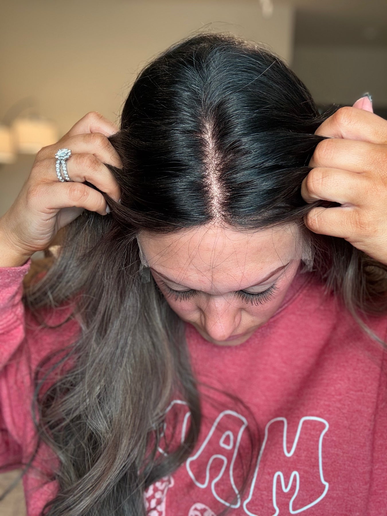 The BUTTER LUXE is a cap type that has silicone on the ear tabs and nape to provide extra security for those that still have some bio hair and clips tend to not bother them. Double Lace Illusion WITH SOFT LUXURY DIAMOND LACE AND are made with Premium BUTTER soft Mongolian  hair. These caps are very durable due to having two layers of lace sewn together. Lace tops provide more volume at the roots rather than silk tops lying flat. It also goes up into a pony with ease, but can be worn down as well! This hair texture dries slightly wavy, is coarser in individual strands, and is perfect for those that are familiar with European hair and its texture.