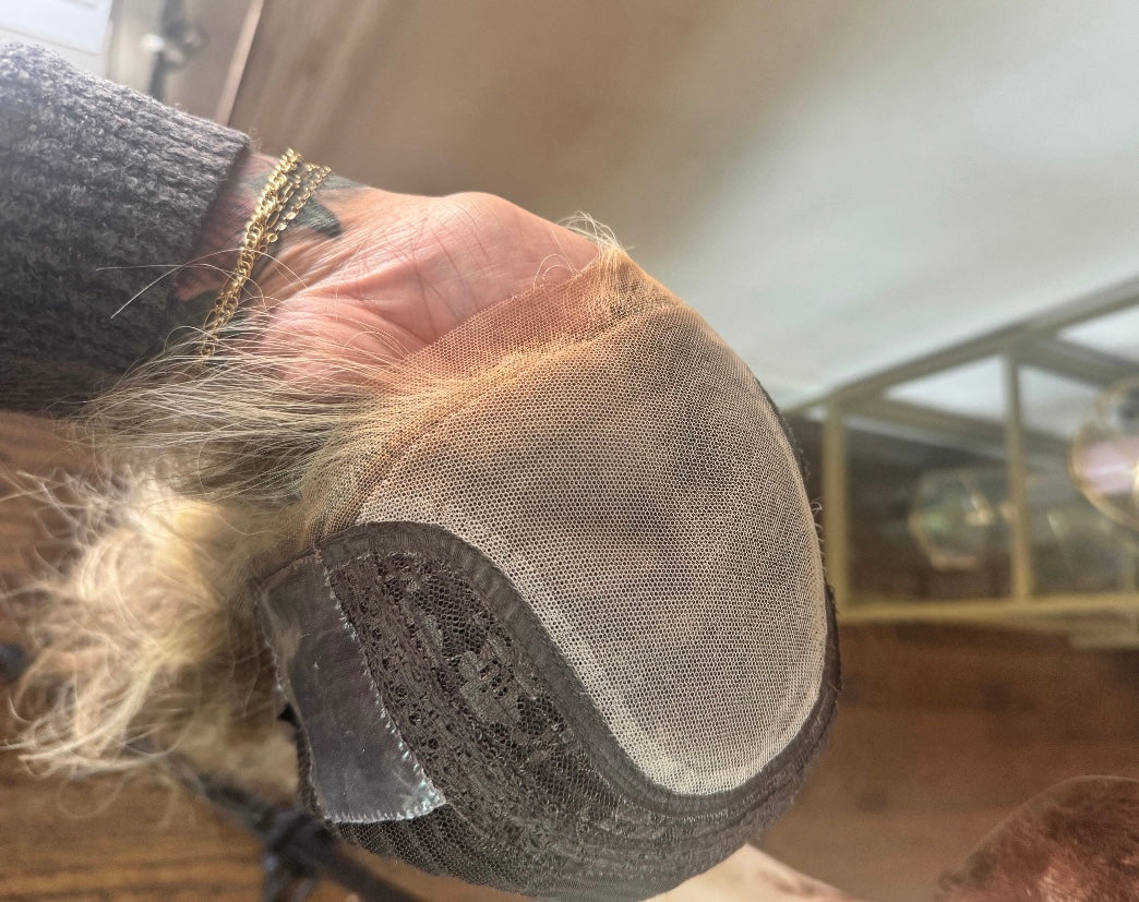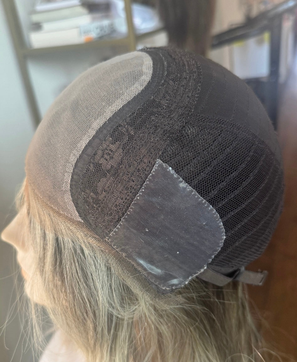The Double Illusion Pony Wig is not only a stylish cap, the silicone on the ear tabs and comb at the nape provide extra security and make it comfortable to wear daily. This wig has a double lace top and a small lace front that will replace your hairline and make a brand new gorgeous one! The cap is designed for people who enjoy styling their hair in updos and ponytails. The nape of the neck is hand tied, which means each strand is individually sown to be styled in any direction. This makes updos all the more fun and natural looking! Although this wig is called a “pony” wig, it is not only able to be worn in a pony. It can be worn down just like any other wig!
