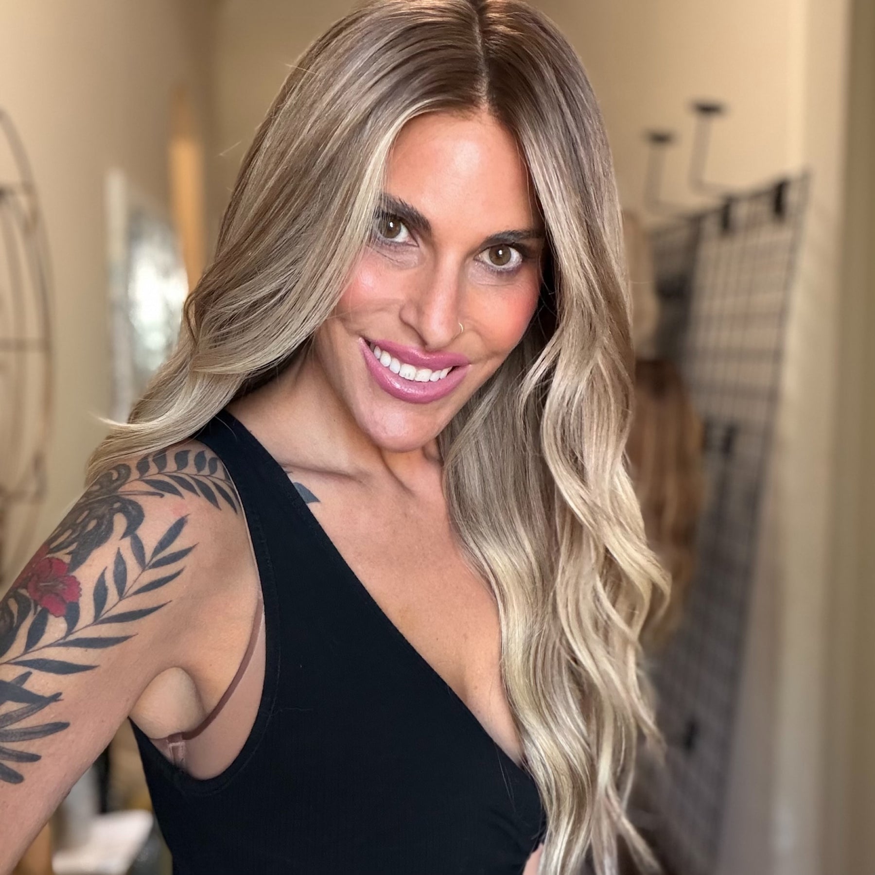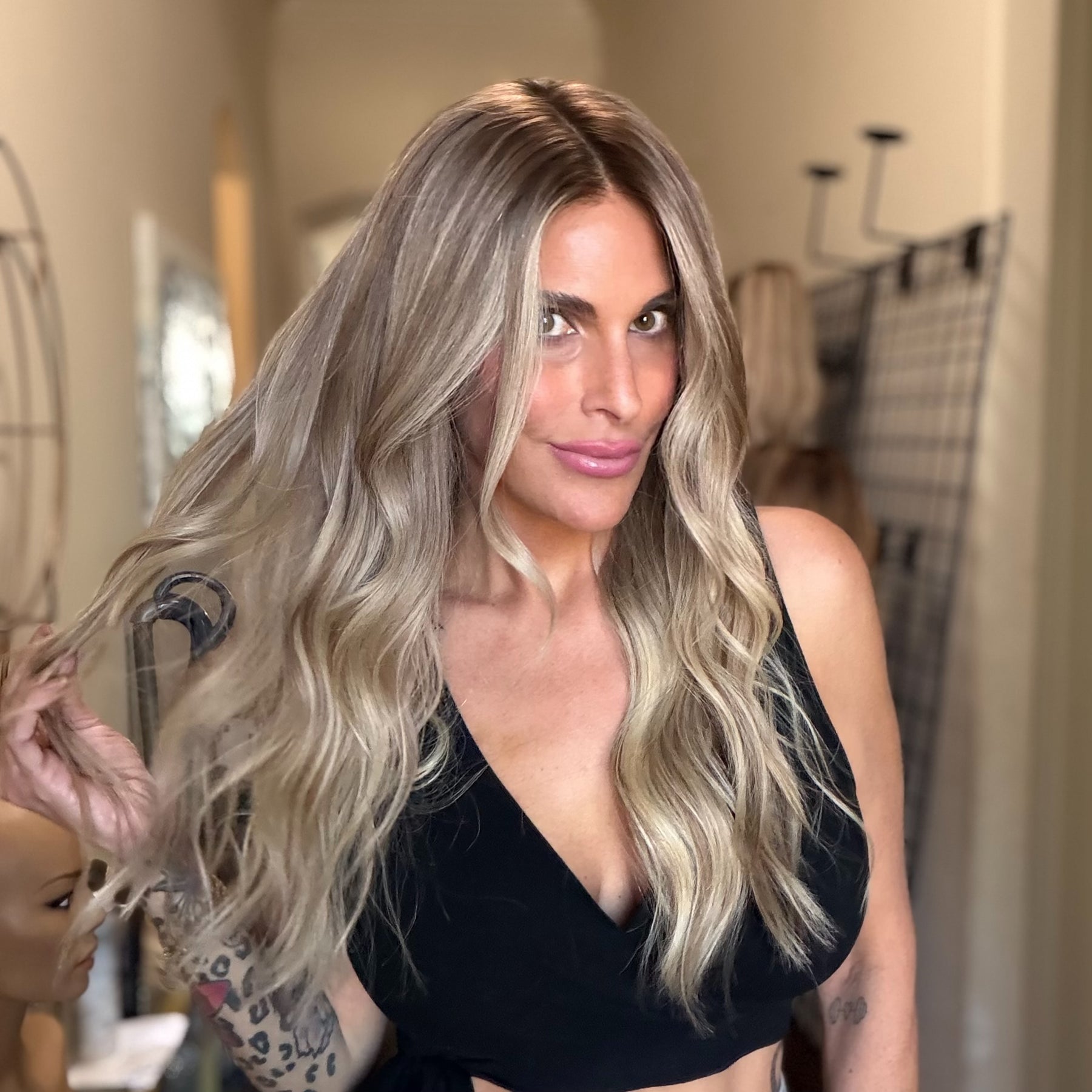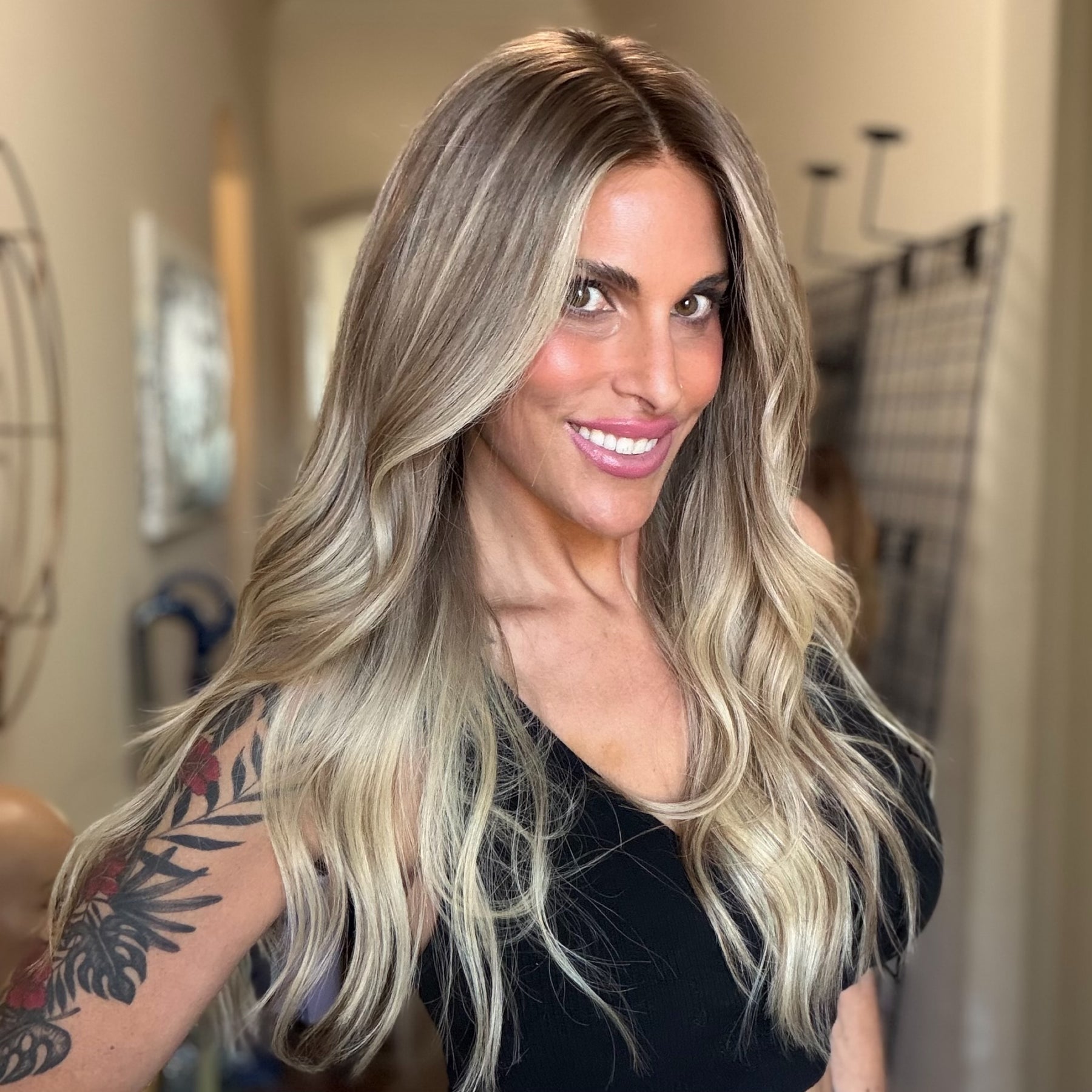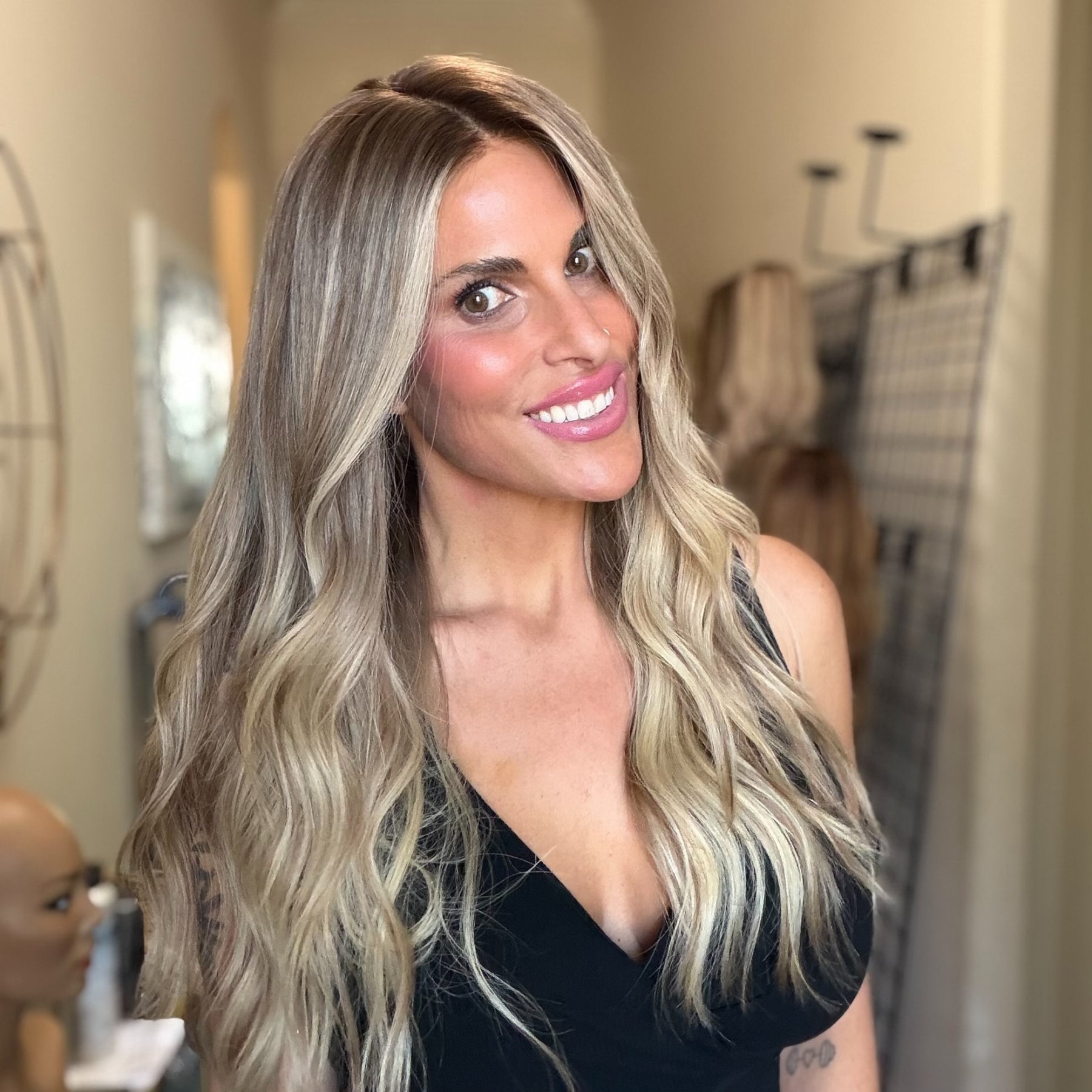 Color: dark ash gold blonde roots and lowlights with creamy blondes